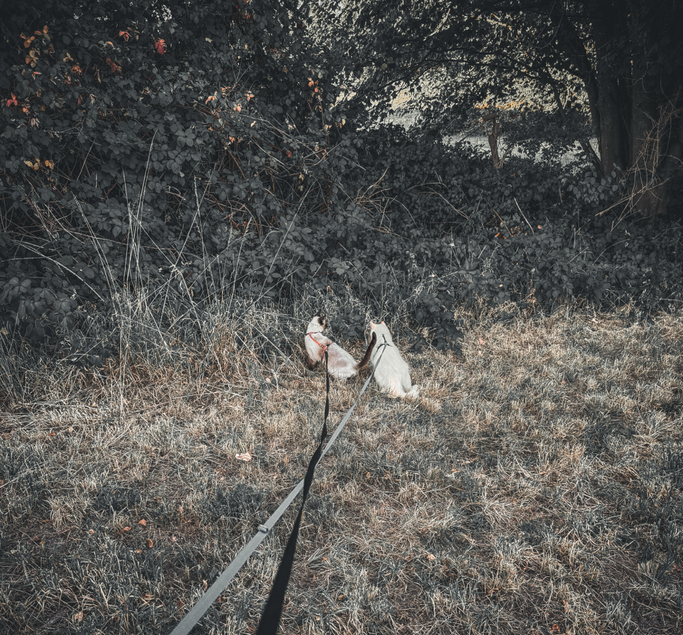 Auch meine beiden, Salem und Phoenix, bleiben auf langen Touren durch unbekanntes Gebiet manchmal dicht bei mir. Aber das ist kein Zeichen von Leinenführigkeit, sondern von Überforderung. Nähe bedeutet bei Katzen fast nie Gehorsam – sondern Orientierung.