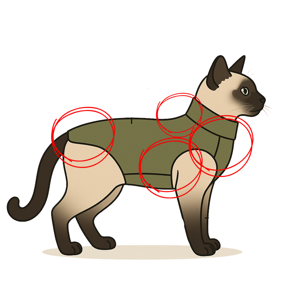 Das Hauptproblem ist, dass Mäntel ausgerechnet dort Druck machen oder fixieren, wo Katzen maximale Bewegungsfreiheit brauchen.